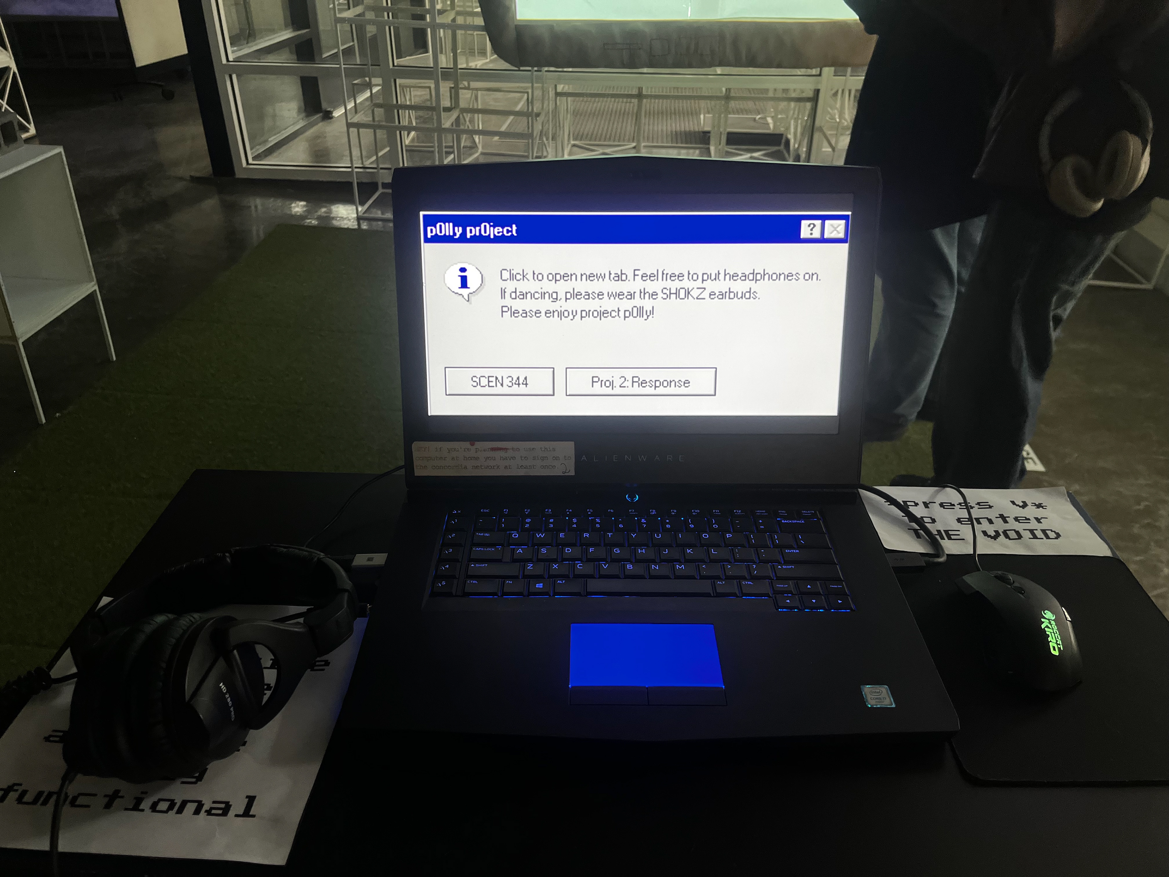 Kinect Camera body tracking, interactive mouse and keyboard function, projection, double screen inputs, headphones