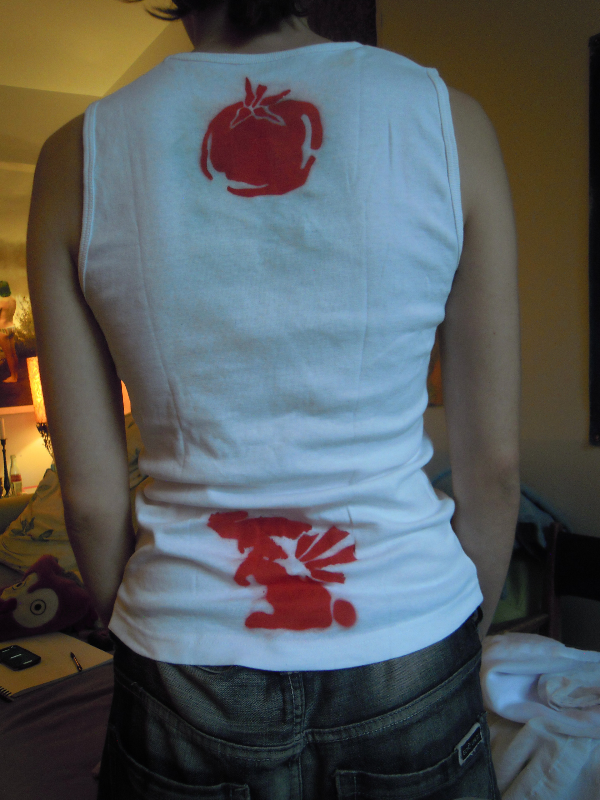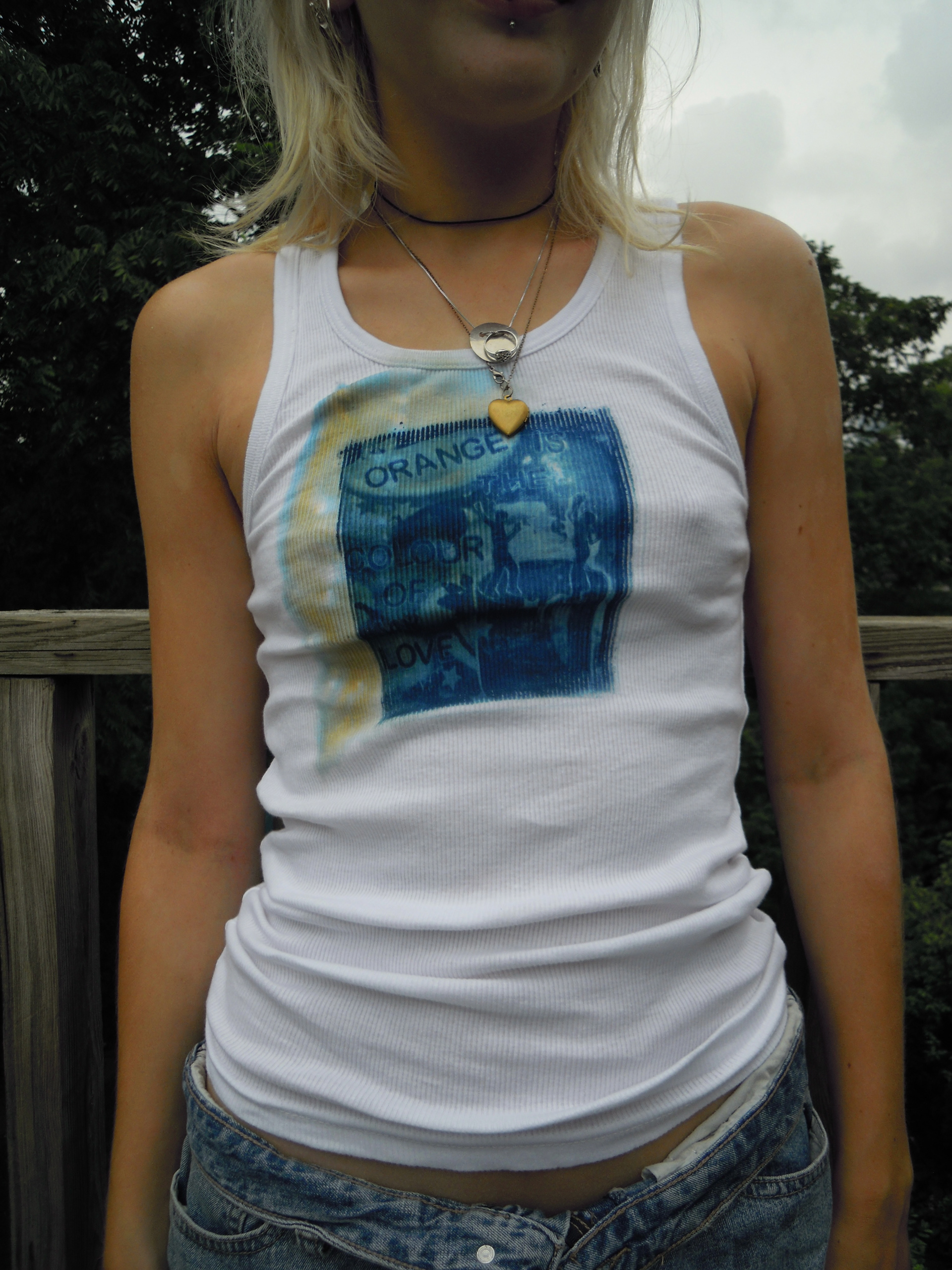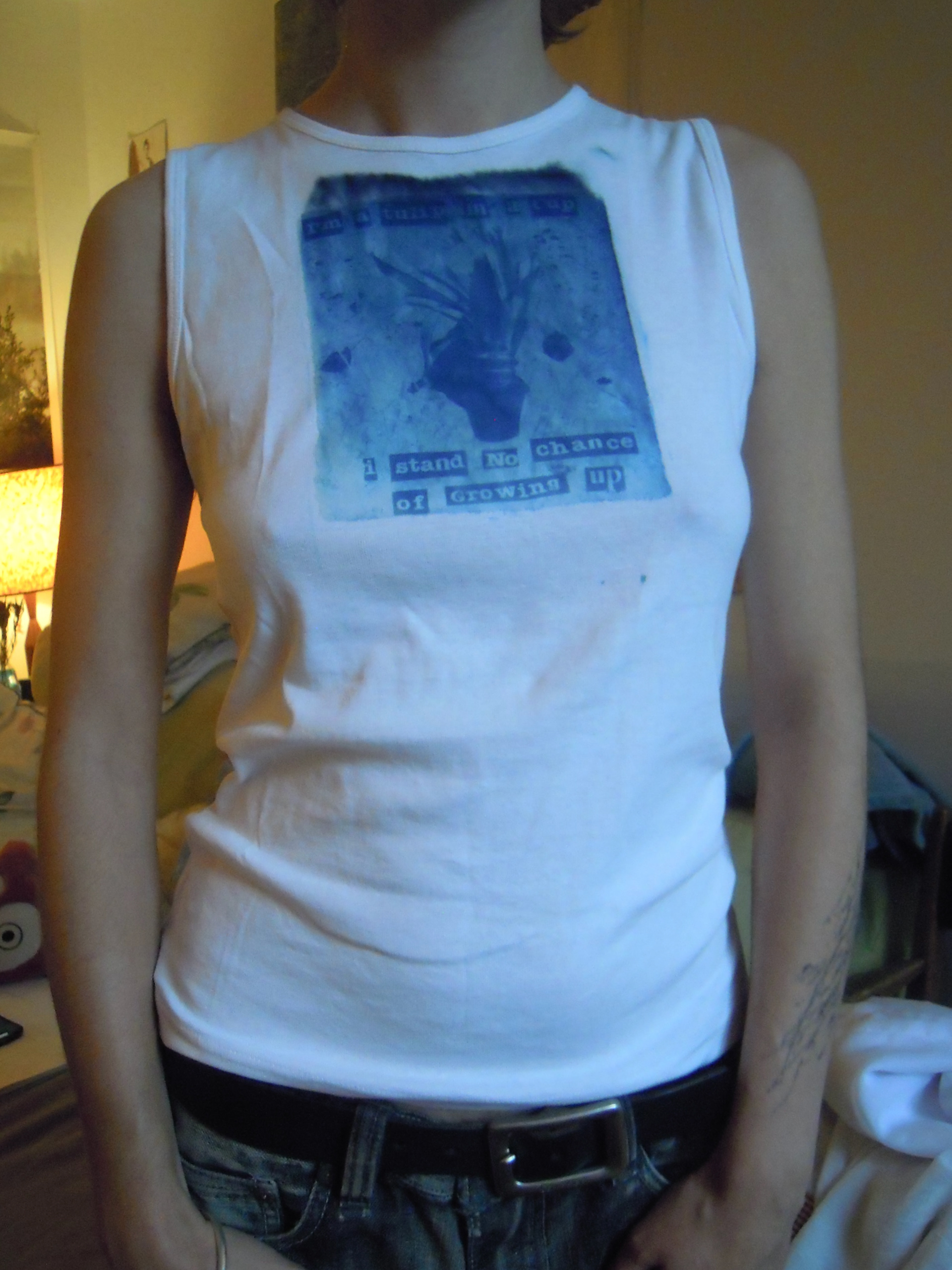 one-of-a-kind cyanotype, stitched, spray painted shirts