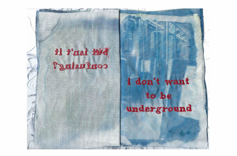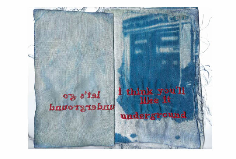 2021 cyanotype and embroidery on linen book
